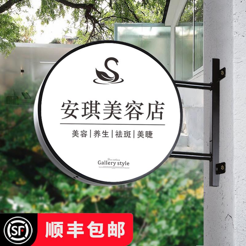 铁艺灯箱广告牌LED压克力双面方形圆形 门头招牌定制 店铺悬挂墙式