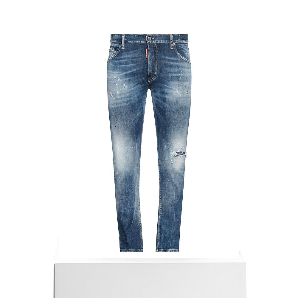宽松直筒阔腿长裤 Kuvine秋季 男款 高街复古做旧泼墨水洗牛仔裤 美式