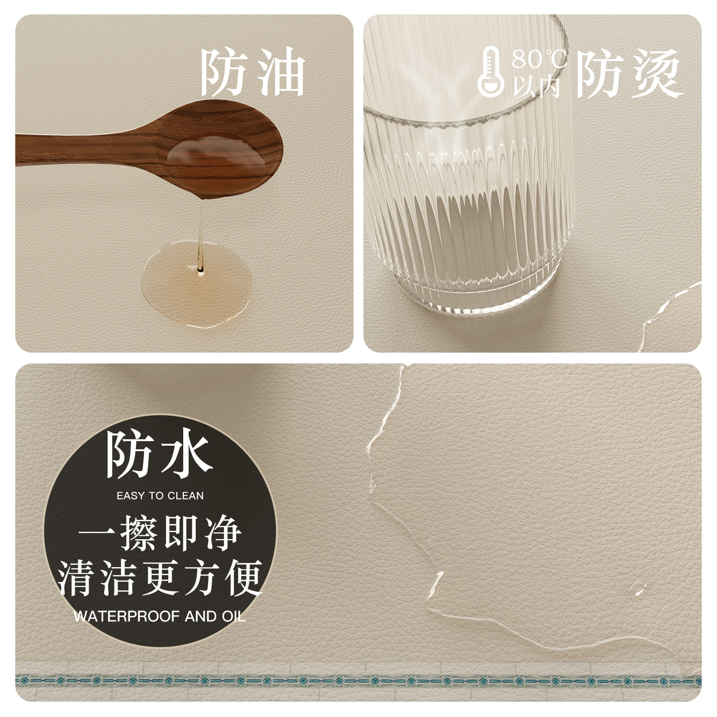 轻奢高级感中古风桌布餐桌垫防水防油防烫皮革法式 复古免洗茶几垫