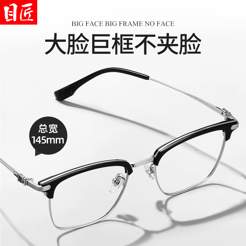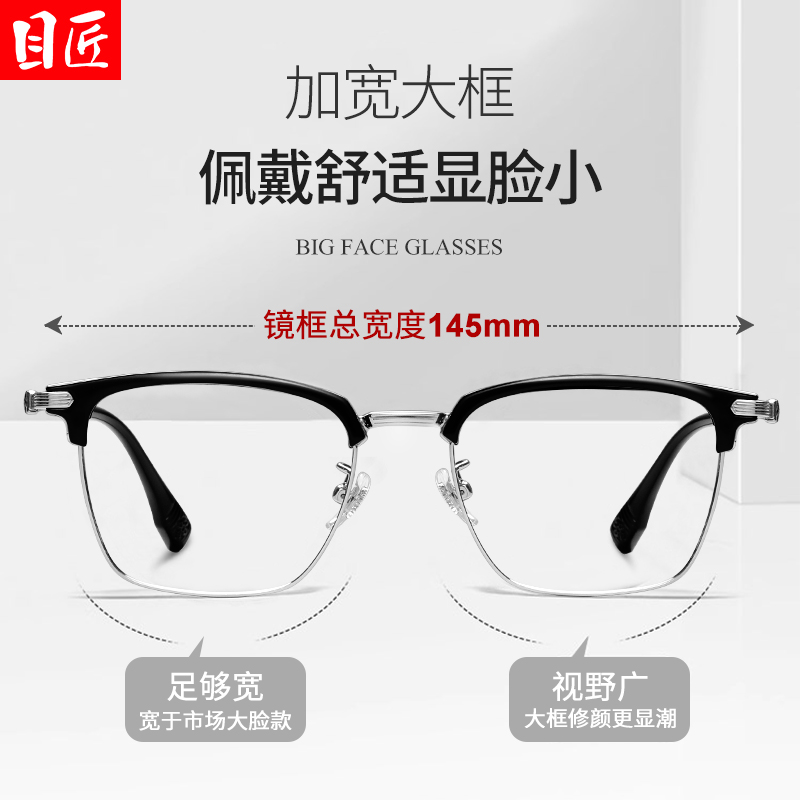 康视顿大框超轻近视眼镜男款 显脸小定制成品光学18129 有度数时尚
