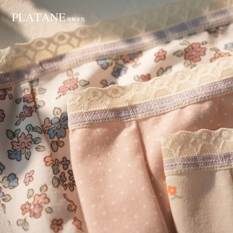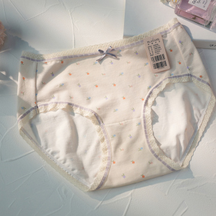 印花轻薄抗菌纯棉底裆半平角裤 三福女中腰包臀内裤 清新满版
