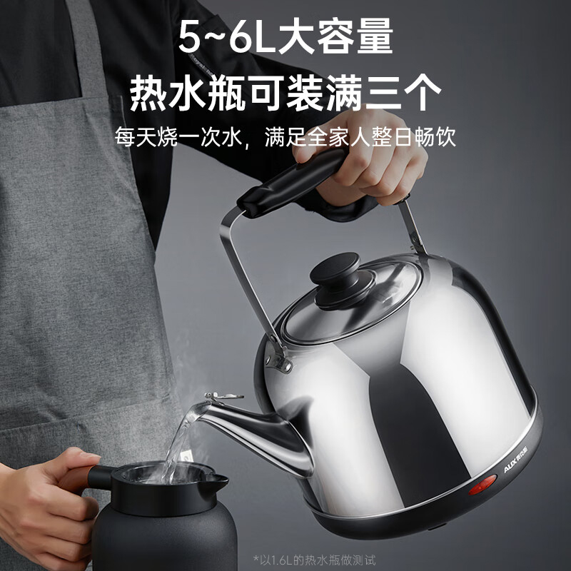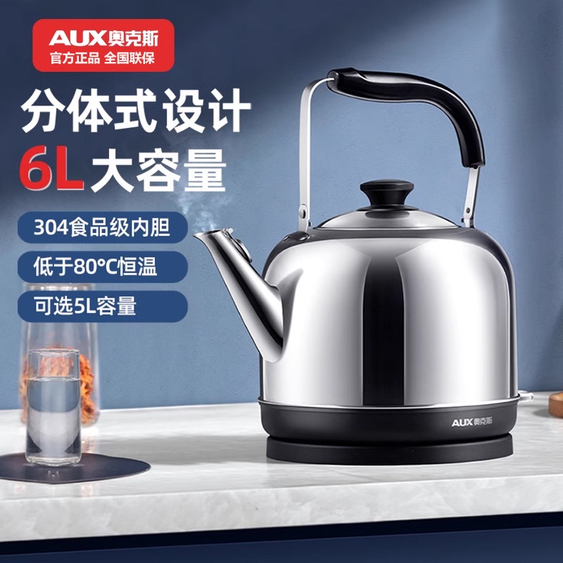奥克斯电热水壶家用304不锈钢5L6升大容量自动断电保温一体烧水壶