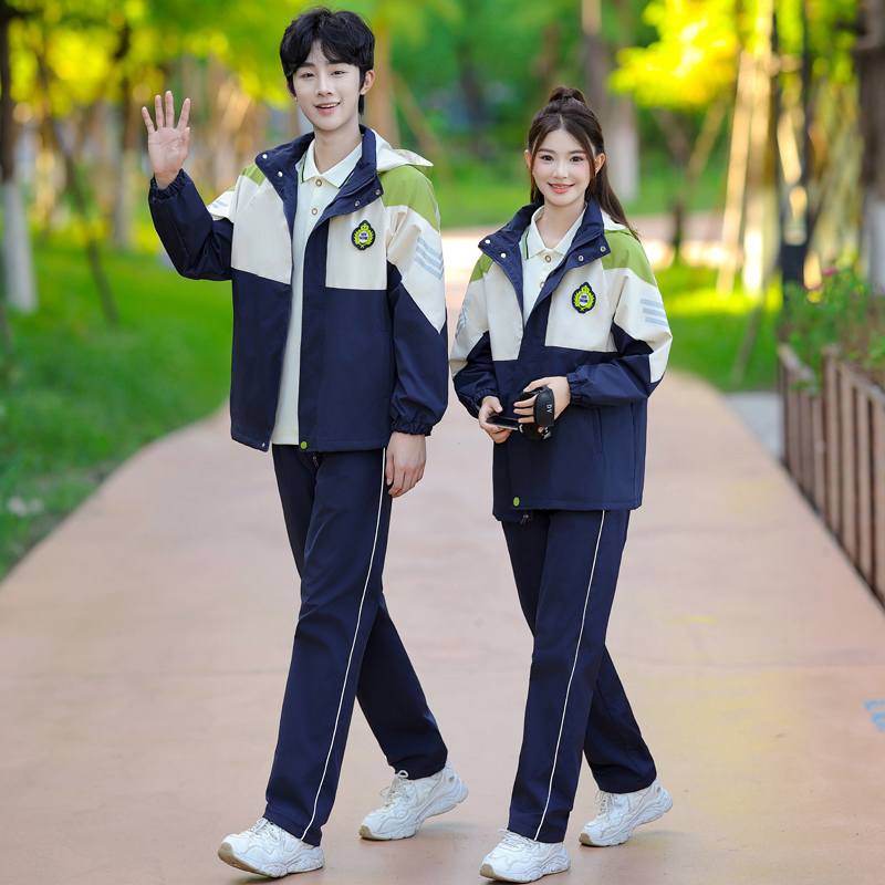 初中生冲锋衣校服学院风高中生运动会班服套装 加绒三四件套 秋冬季