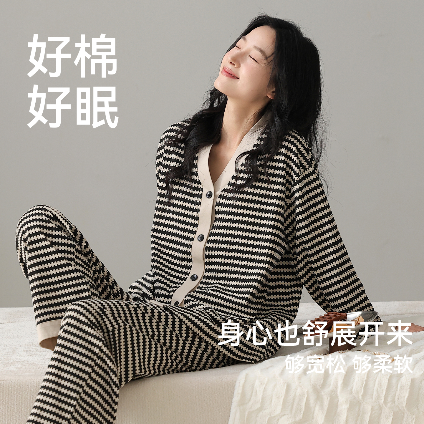 2025新款 纯棉长袖 夏日系休闲家居服可外穿 春秋款 都市丽人睡衣女款