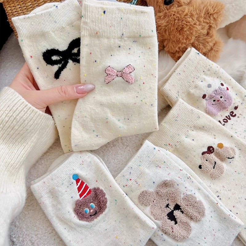 纯棉中筒袜花边白色夏季 波点秋季 卡通长袜 爆款 堆堆袜子女2025新款