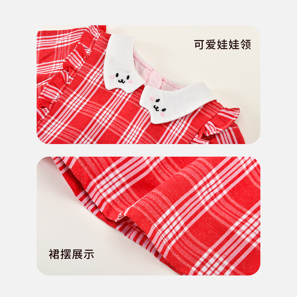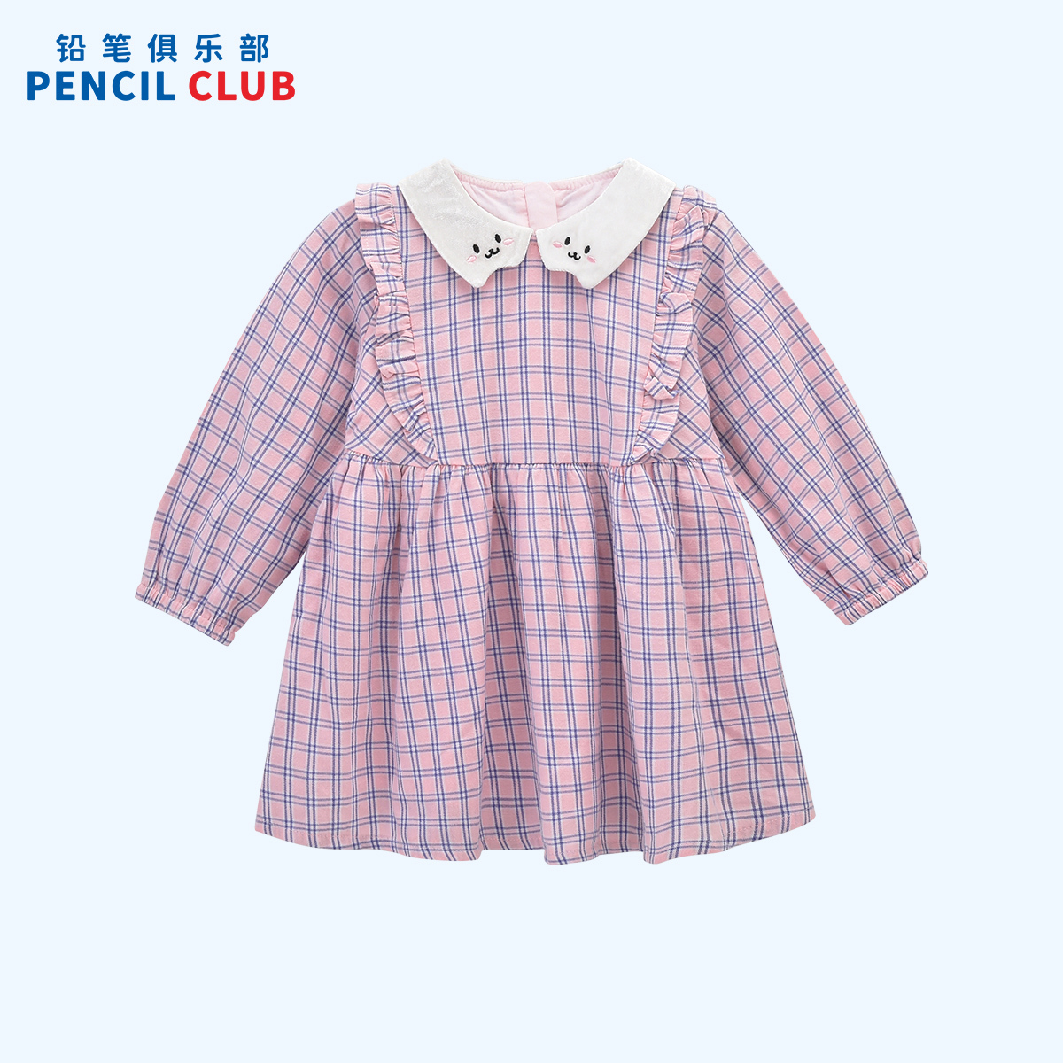 铅笔俱乐部2025秋装 女小童连衣裙儿童甜美格子裙宝宝翻领裙子 新款