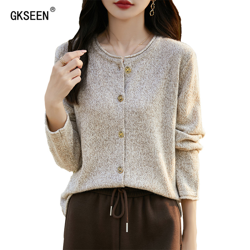 圆领卷边开衫 女2025秋冬新款 上衣宽松显瘦简约百搭毛衣 针织衫 长袖