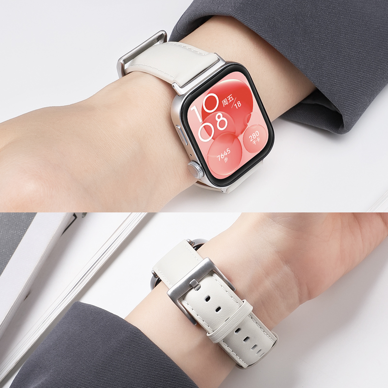 46时尚 高级感honor5腕带22mm真皮男女士款 透气配件替换带 watch5秋冬款 适用于荣耀手表5真皮表带智能运动新款