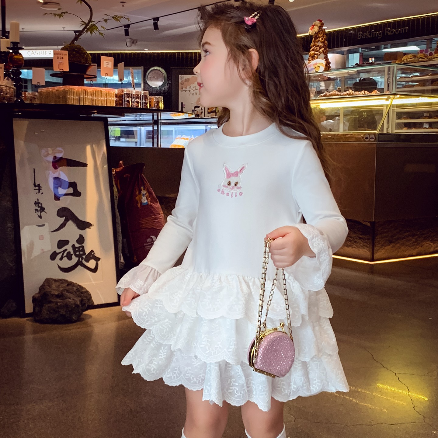 兔子刺绣蕾丝花边裙子女孩公主裙 儿童韩版 女童连衣裙秋装 2025新款