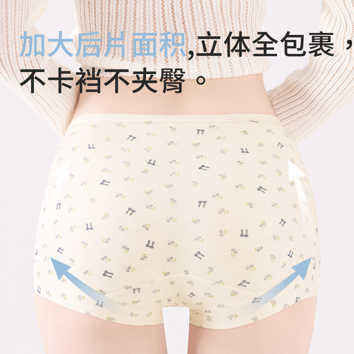 头a 女A类婴儿棉抑菌裆加长档包臀碎花高腰平角裤 猫人大码 纯棉内裤