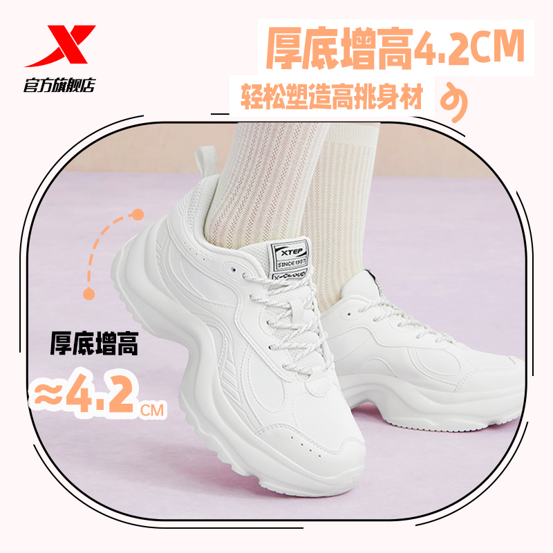 秋季 女鞋 新款 革面百搭厚底老爹鞋 特步云朵 轻便增高运动鞋 休闲鞋