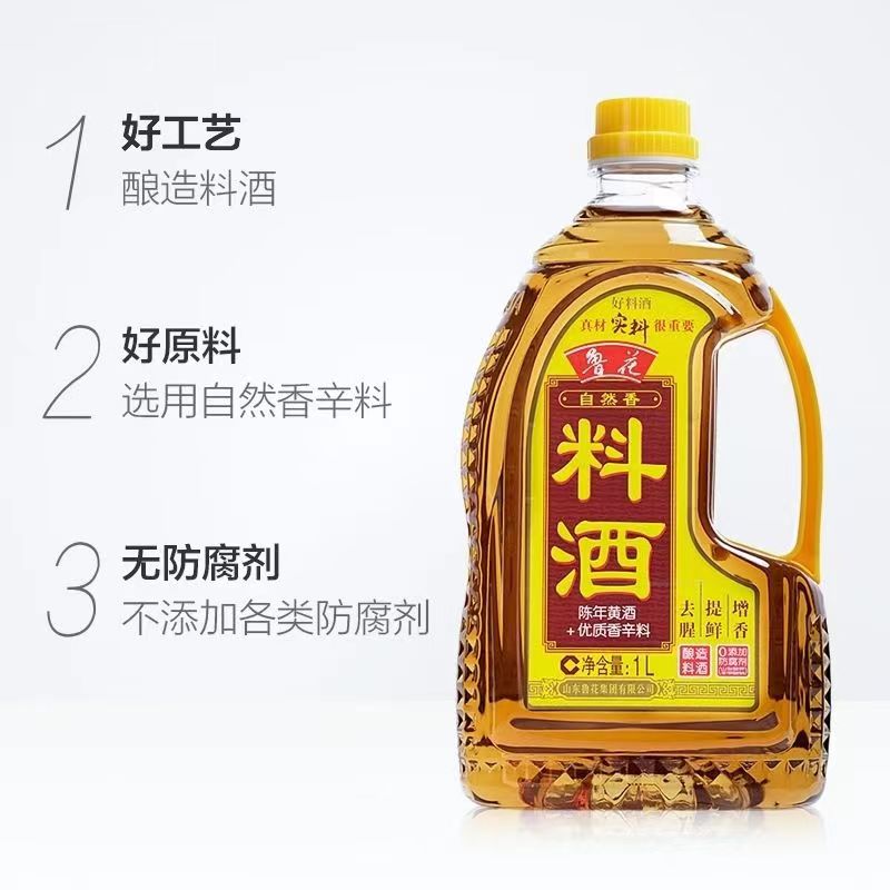 鲁花料酒1L家用官方旗舰店0添加陈年黄酒料酒商用大桶去腥自然香