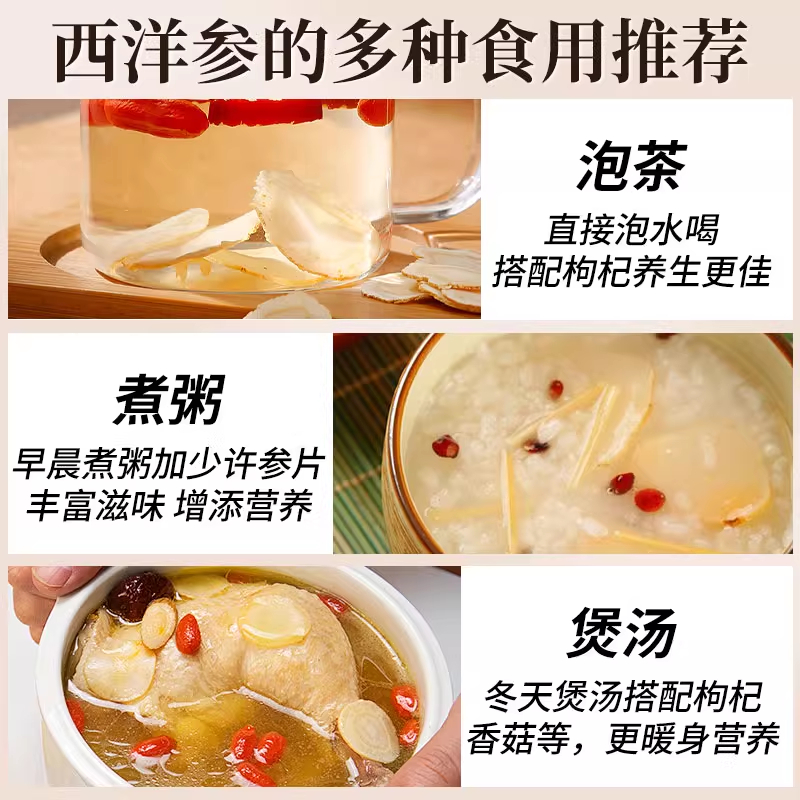 北京同仁堂西洋参片官方旗舰店正品 特级人参花旗参切片泡水中药材