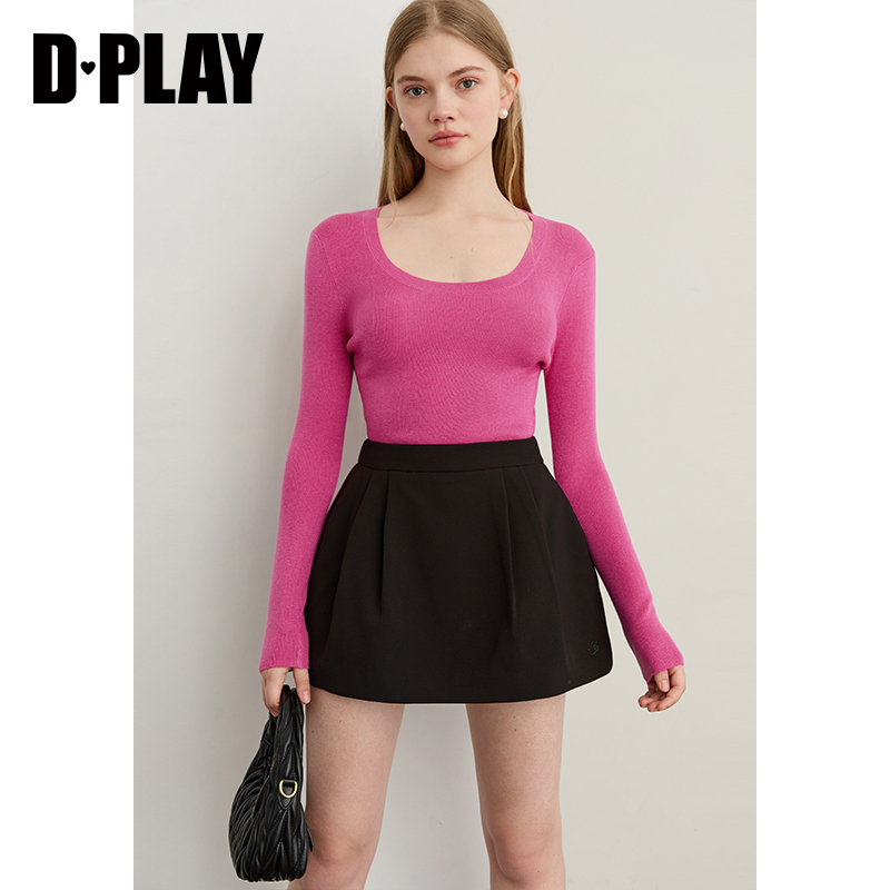 新款 打底衫 粉色针织衫 气质圆领修身 上衣 女时尚 DPLAY2025年秋季
