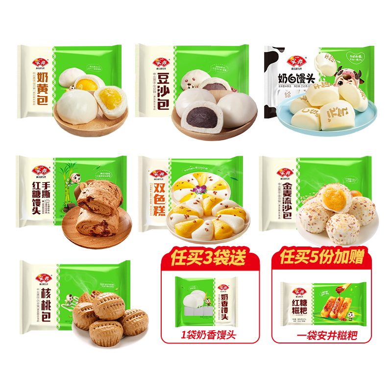 安井早餐半成品包子烧麦红糖馒头加热即食核桃包流沙奶黄包豆沙包