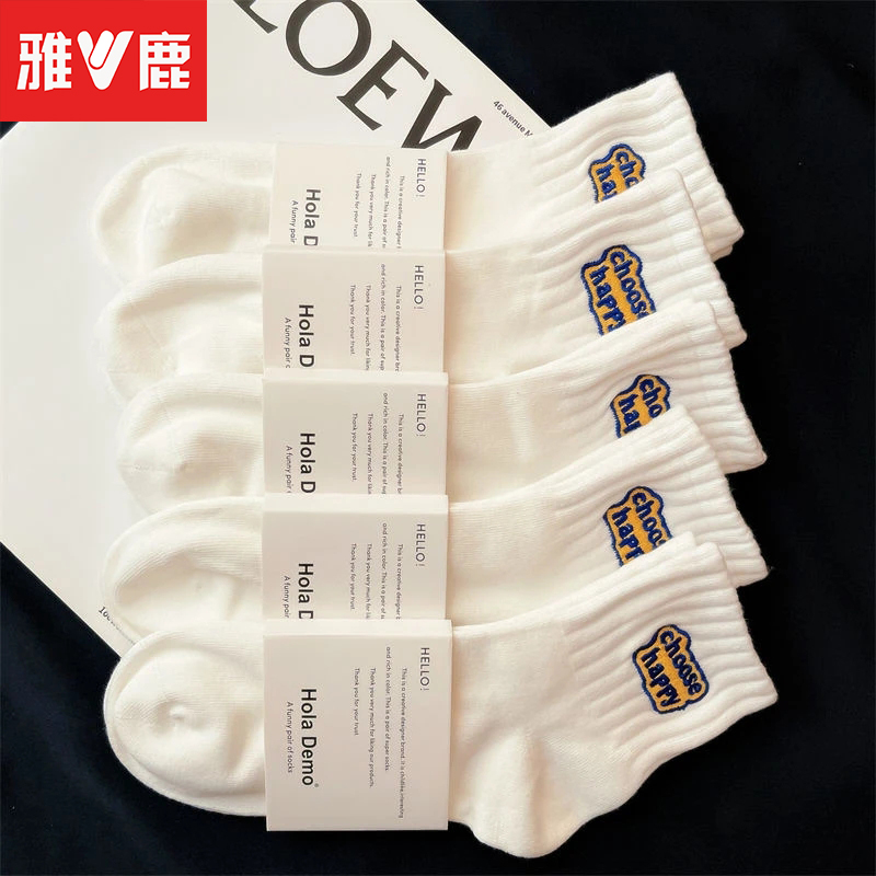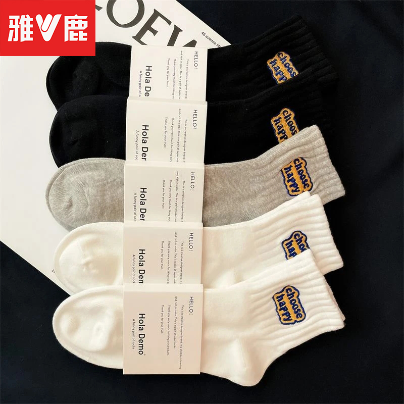 雅鹿袜子男春秋款 透气舒适中筒袜吸汗抗菌防臭袜ins百搭情侣长袜