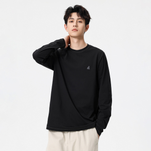 宽松印花黑色休闲百搭套头上衣 t恤男2025新款 hansca秋季 圆领长袖