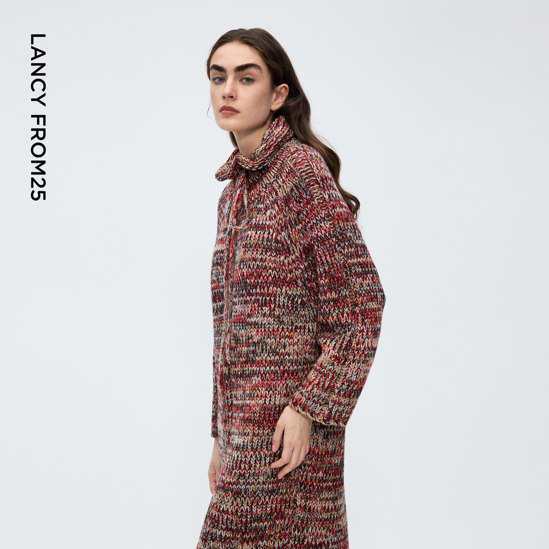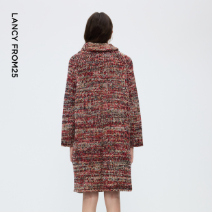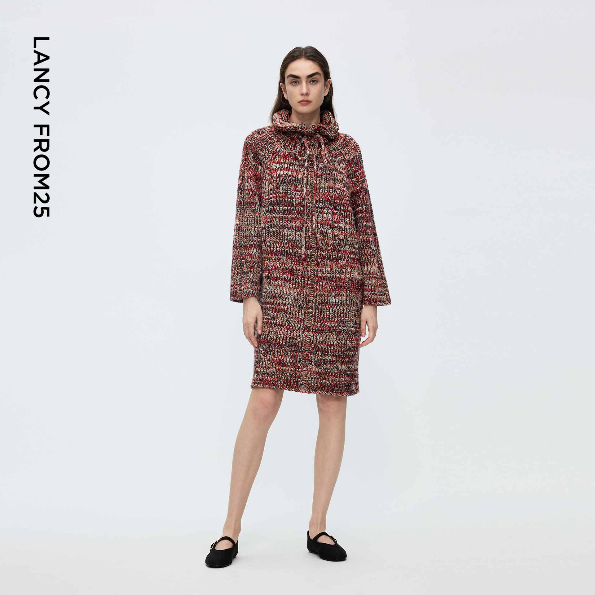 MOVEUP幻走2024冬季 .FUN系列不对称抽褶半高领针织打底连衣裙 新款