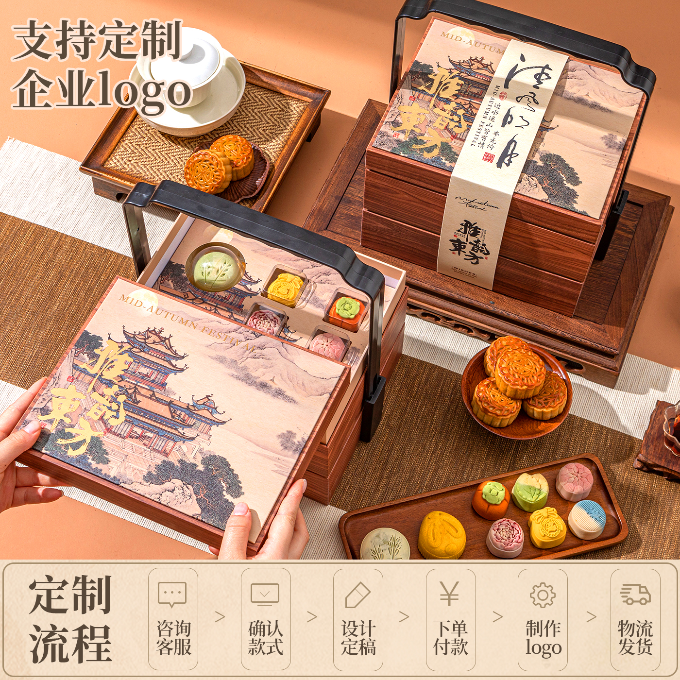 2025新款 送人多口味提蓝中秋节送礼品高端团购定制logo 月饼礼盒装