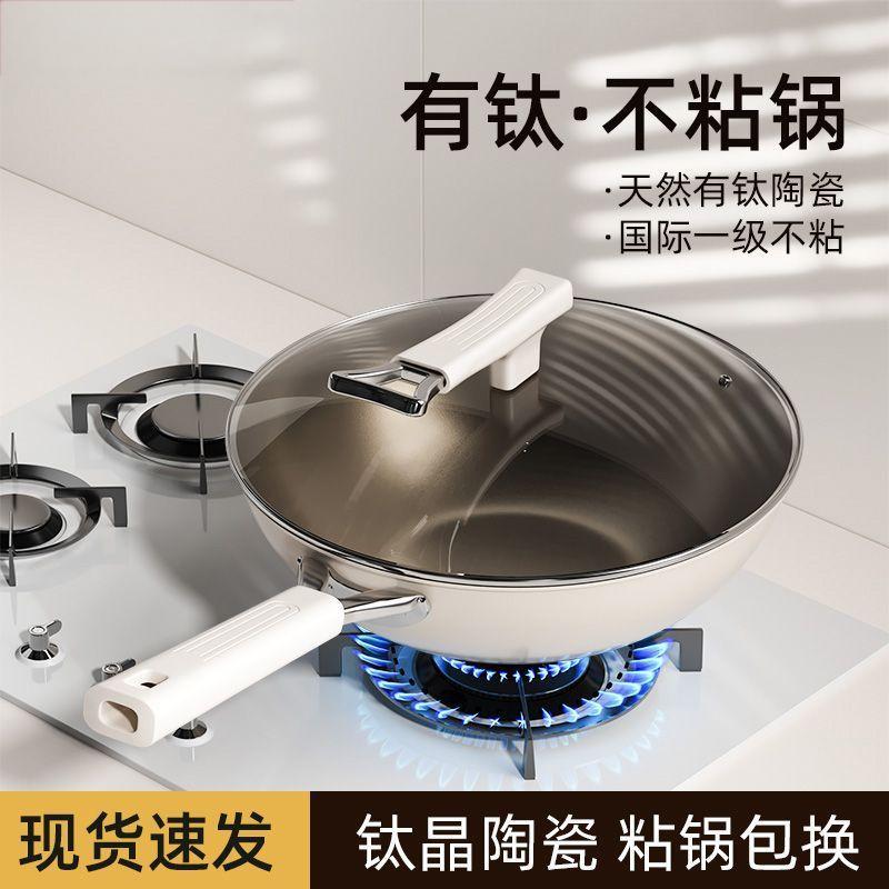 九阳钛锅陶瓷不粘锅炒锅家用平底炒菜锅电磁炉专用官方旗舰新品 炊