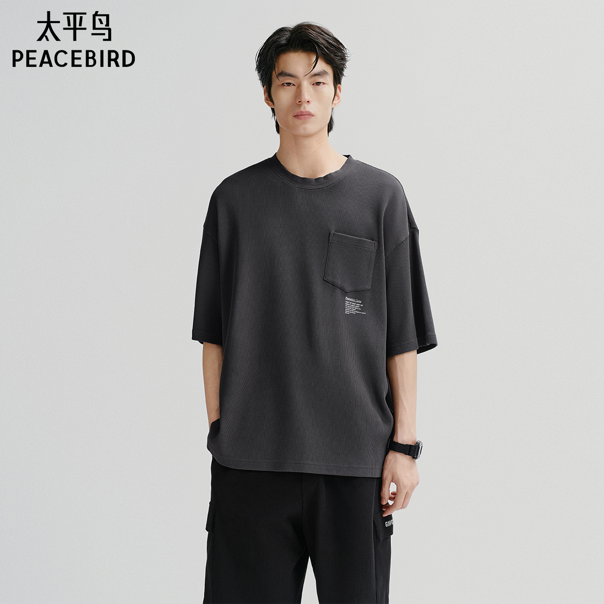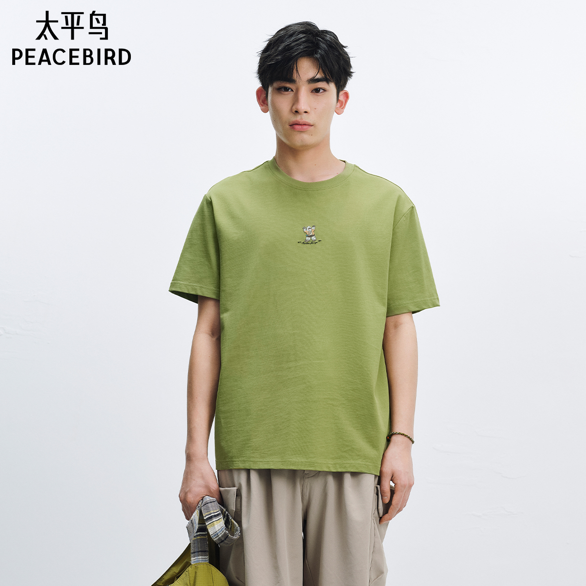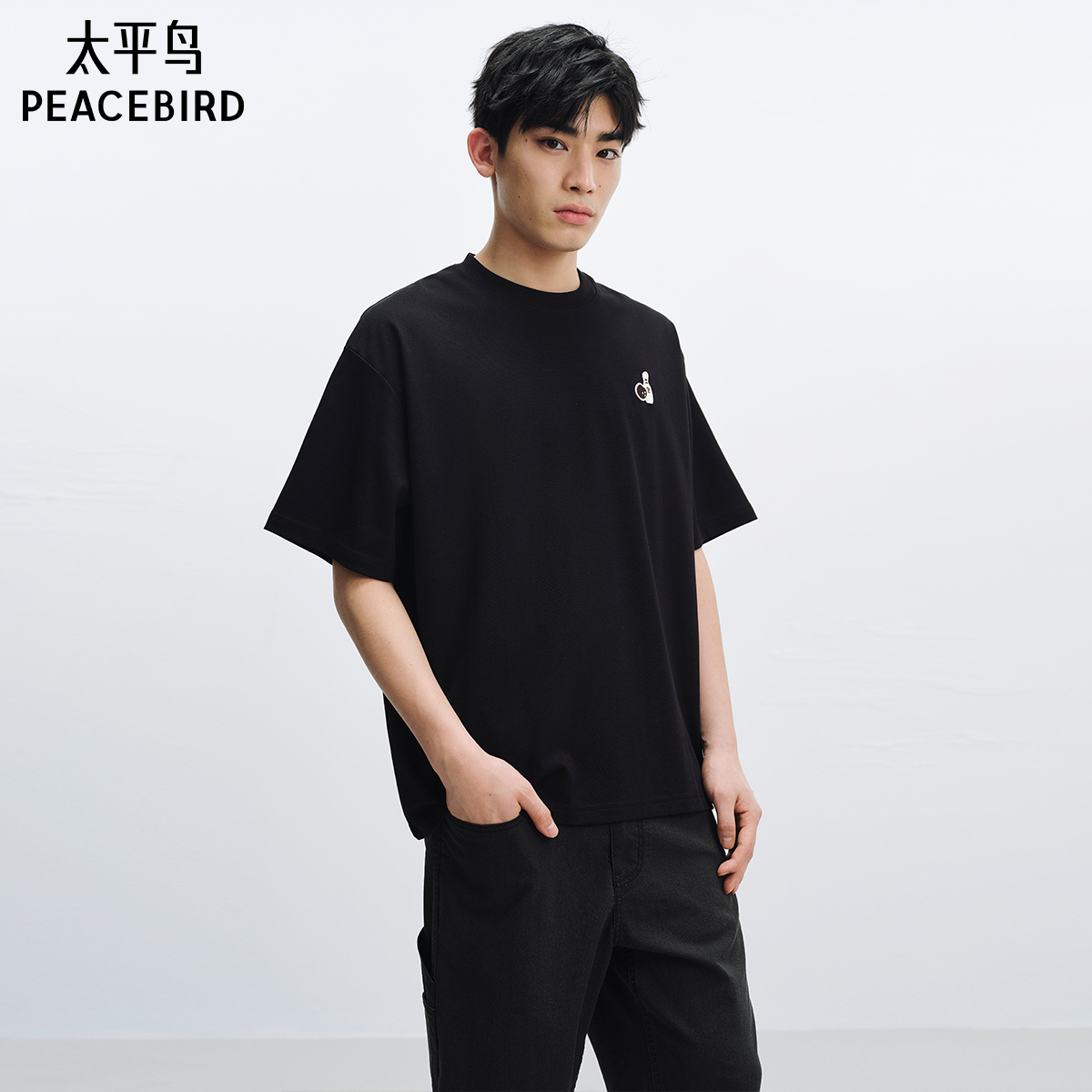 太平鸟男装 清仓 重磅刺绣短袖 t恤休闲体恤衫 潮 纯色半袖 T恤热卖