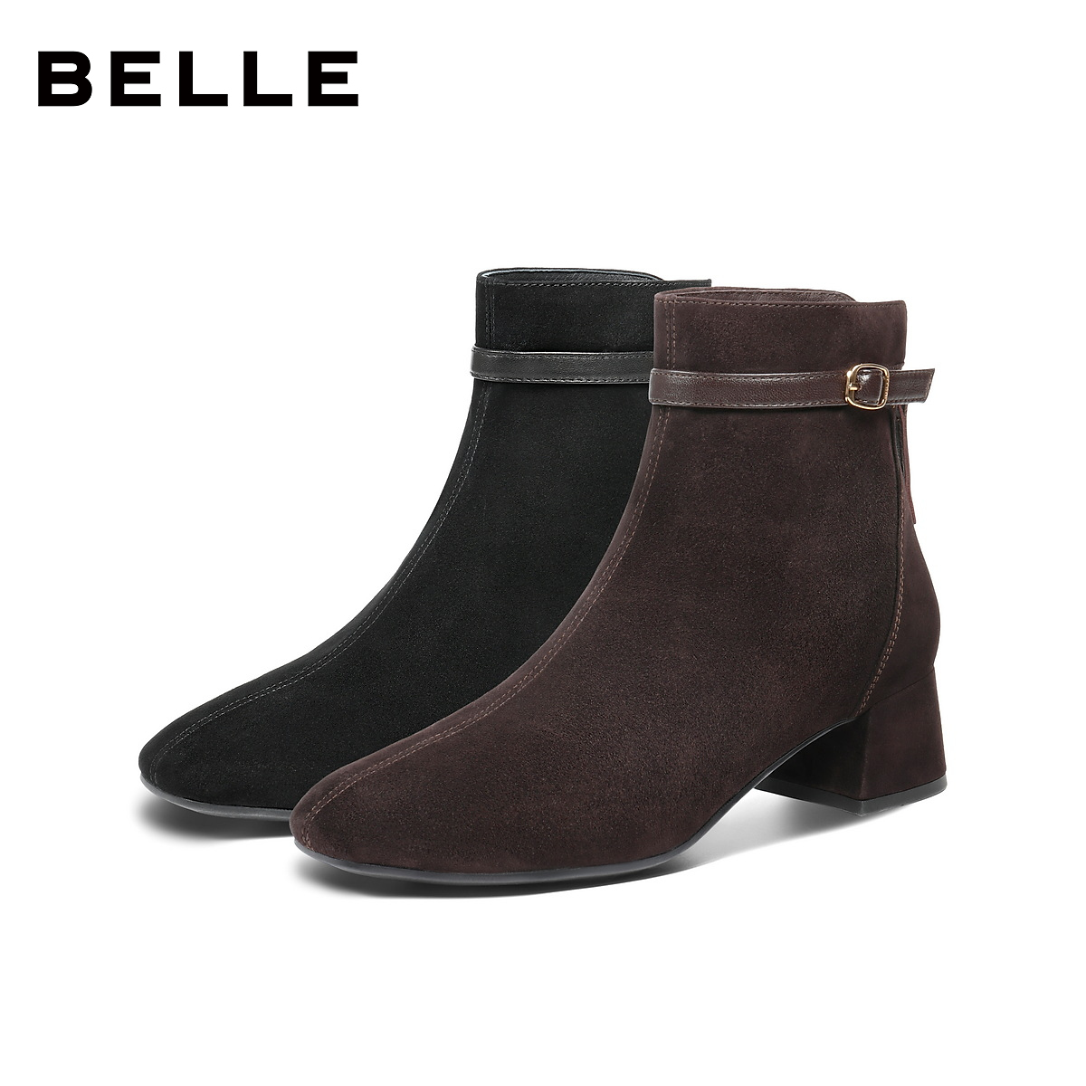 优雅短靴女BBW44DD5 新款 百丽复古显瘦超软羊皮绒面时装 靴子冬季
