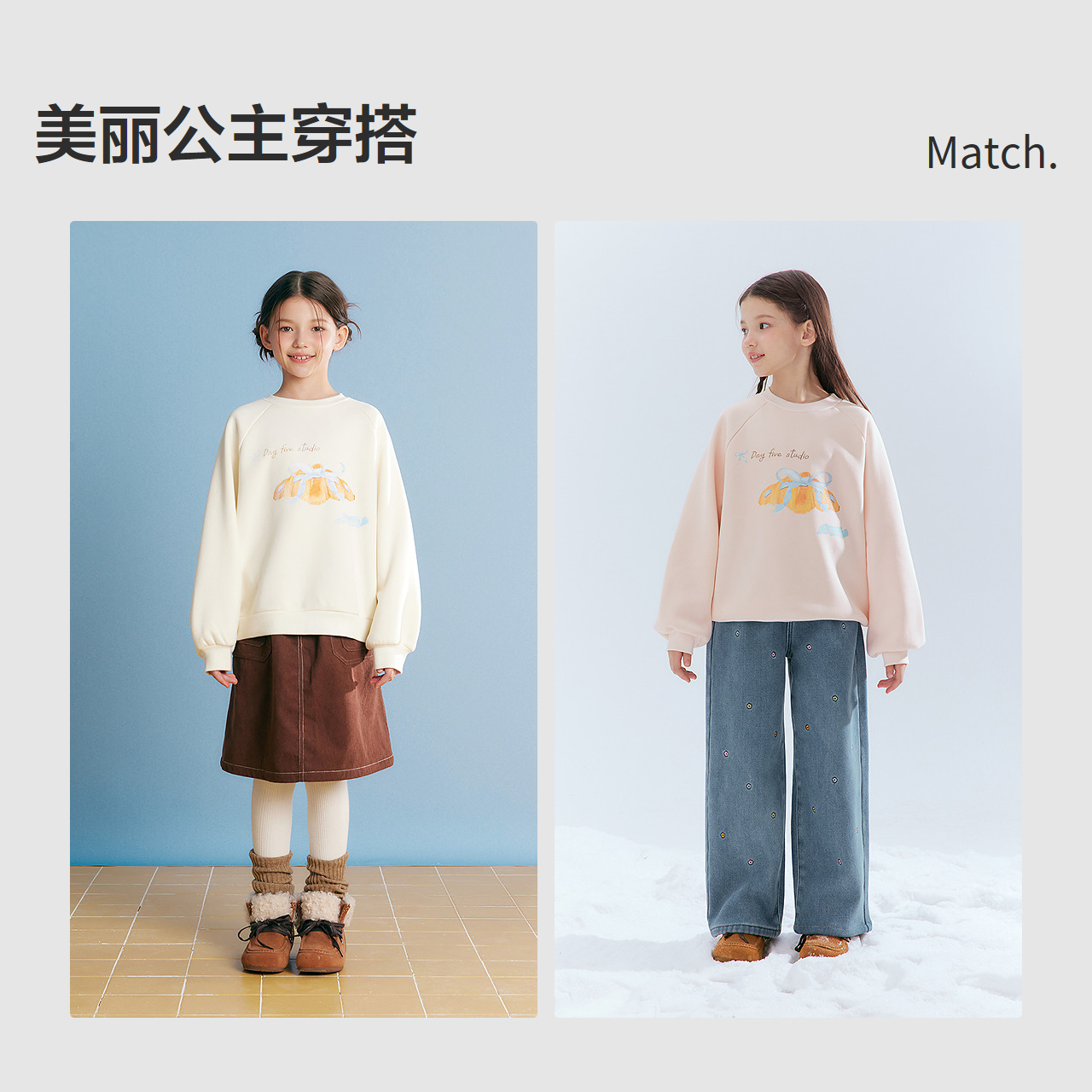 绒衫 笛莎官方童装 中童女孩儿童洋气休闲长袖 新款 女童圆领卫衣冬季