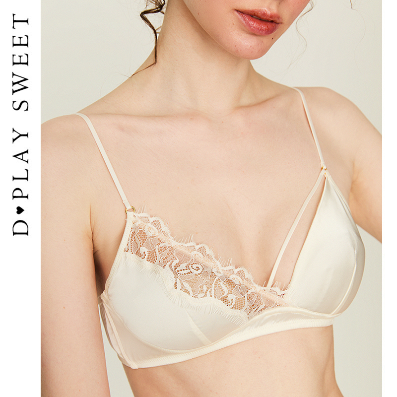 好奇蜜斯蕾丝法式 白三角杯小胸 内衣女美背性感夏薄纯欲文胸罩套装