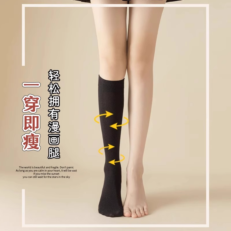 小腿袜子女春秋季 JK潮 过膝袜纯棉中筒袜微压显瘦无骨长筒长袜夏季