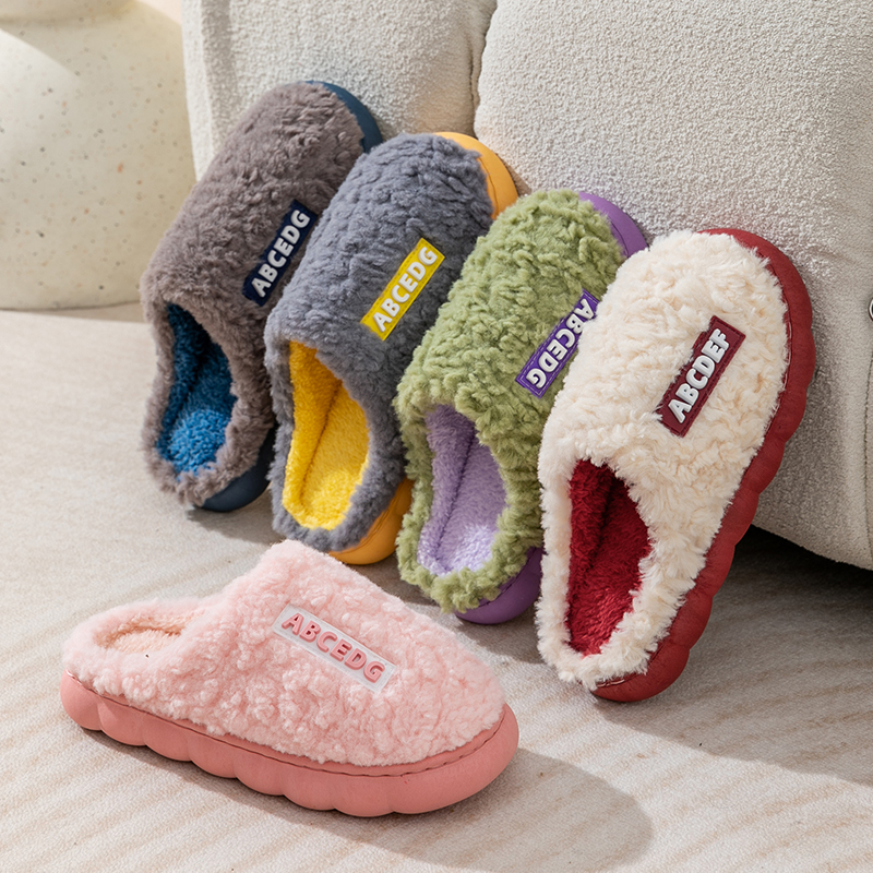 居家用防滑保暖厚底毛毛绒拖鞋 男女情侣款 外穿 棉拖鞋 买一送一冬季