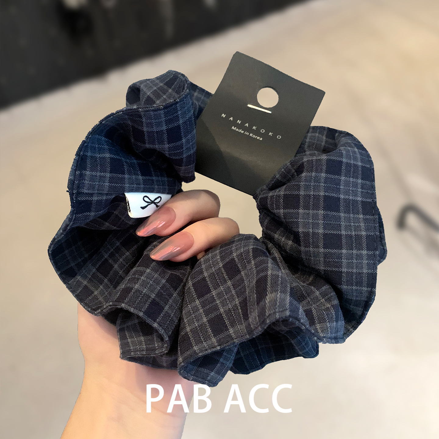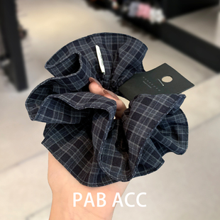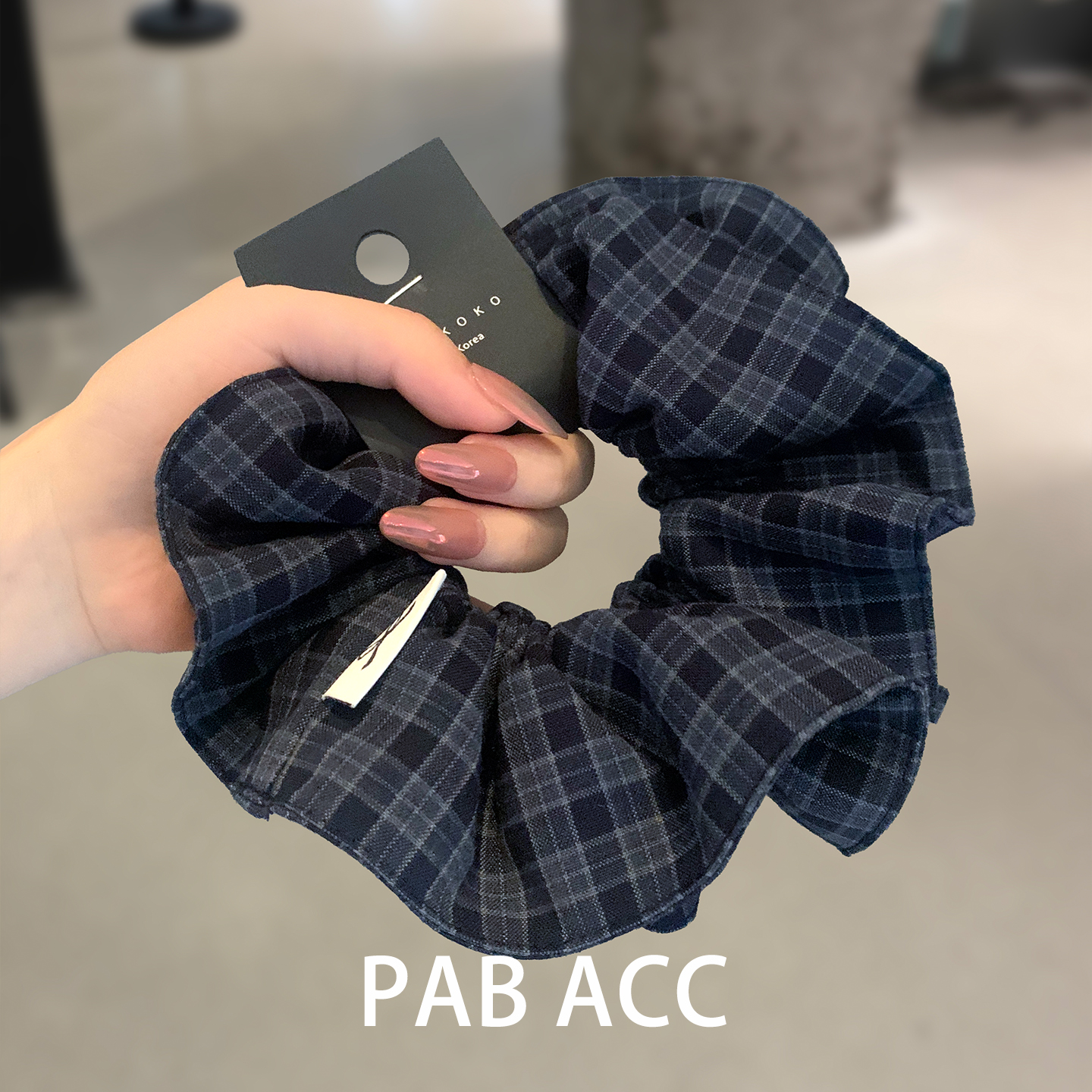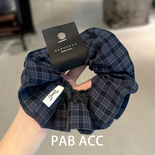 韩国复古格纹花边布艺发圈小众大肠圈头绳ins气质扎低马尾橡皮筋