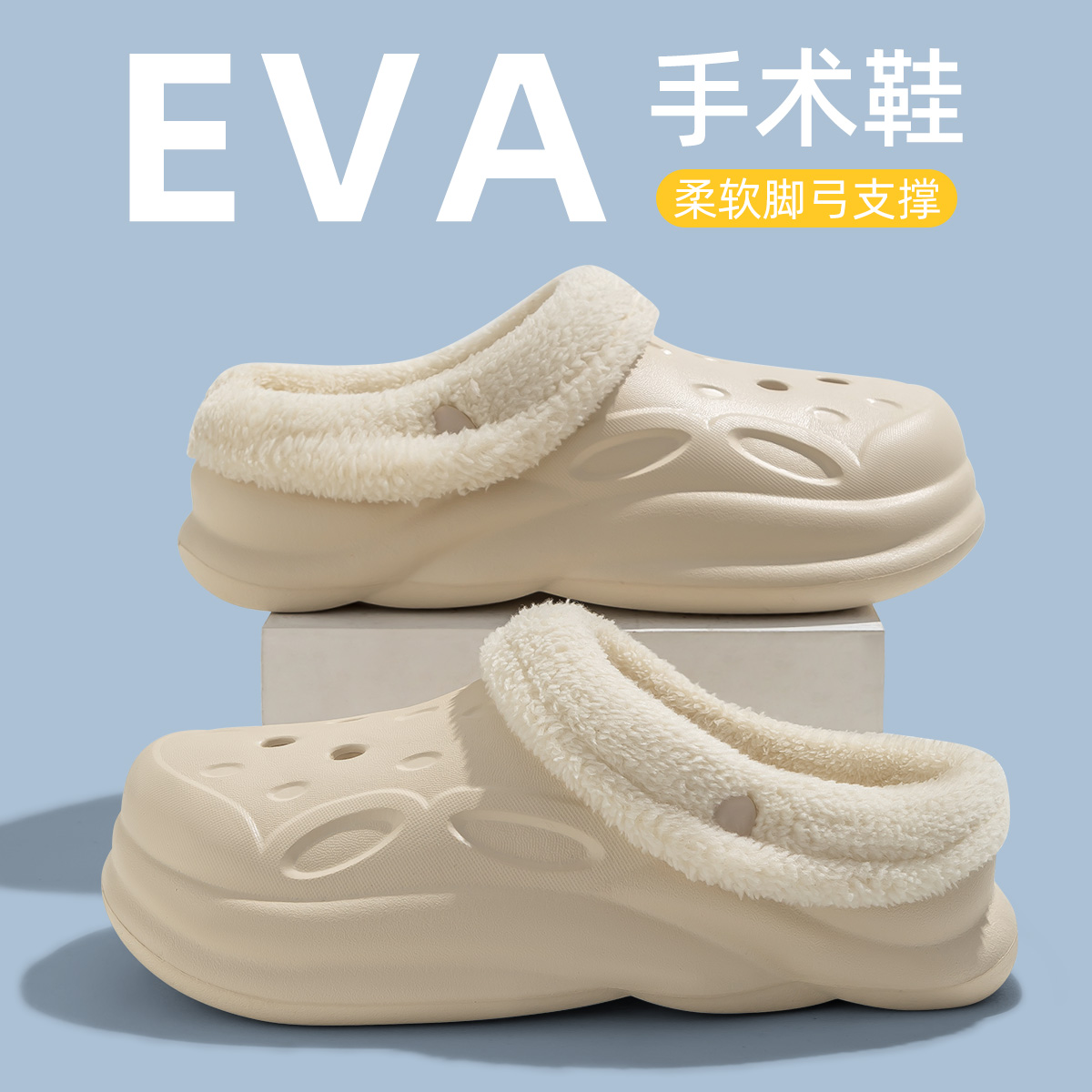 防水防滑护士可拆卸加绒洞洞鞋 冬季 女棉拖 秋冬男士 医用手术室拖鞋