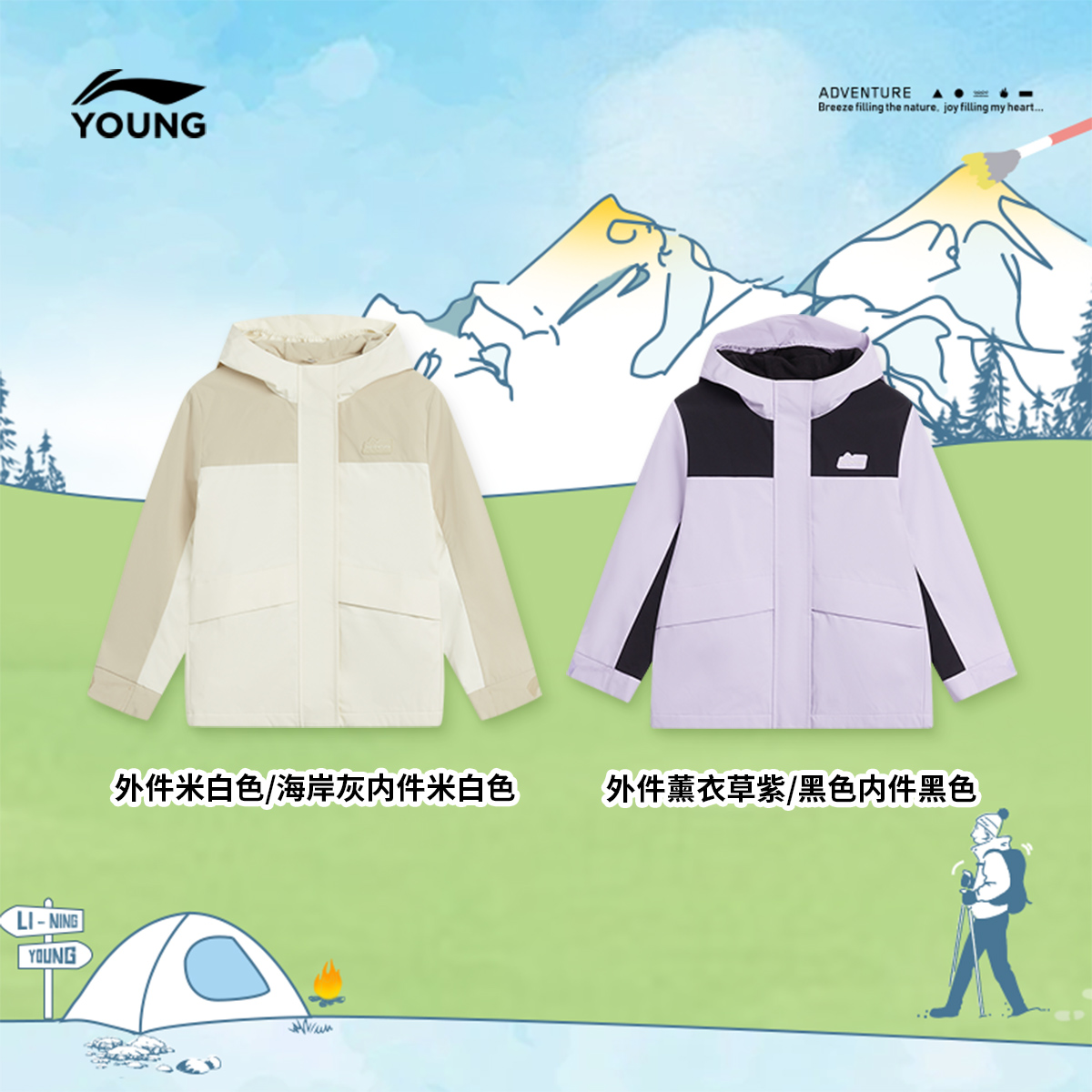 冬装 女童装 李宁儿童三合一羽绒服冲锋外套防风衣25新款 商场同款
