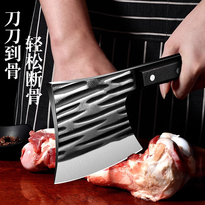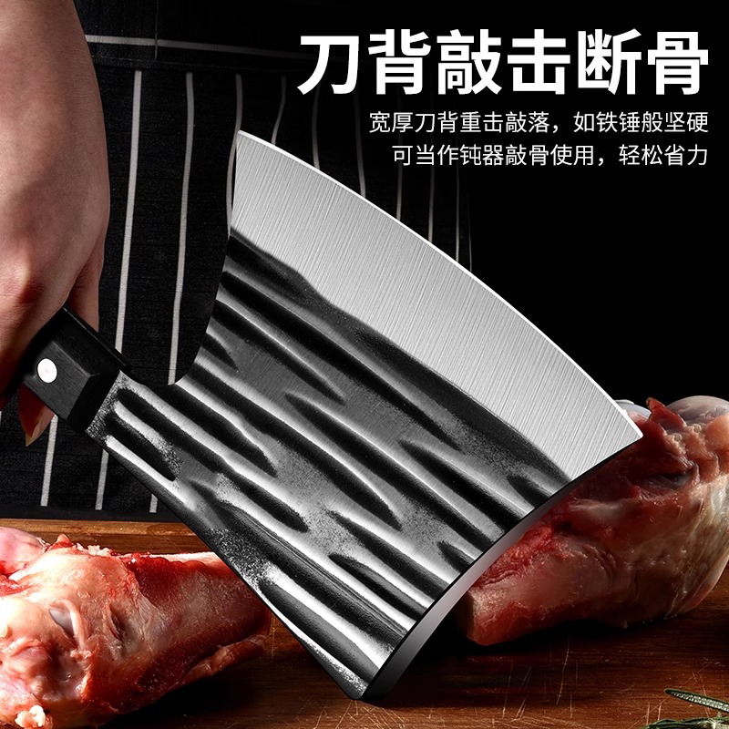 手工锻打斩切两用切菜刀砍骨头家用不锈钢厨房超快切肉片刀具开刃