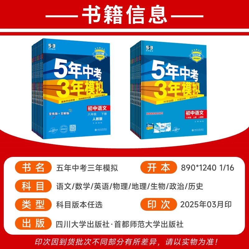 2025秋五5年中考三3年模拟八8年级上下册小四门政治历史地理生物人教版 新教材同步练习册初二测试训练卷必刷题 湘教商务星球苏教版