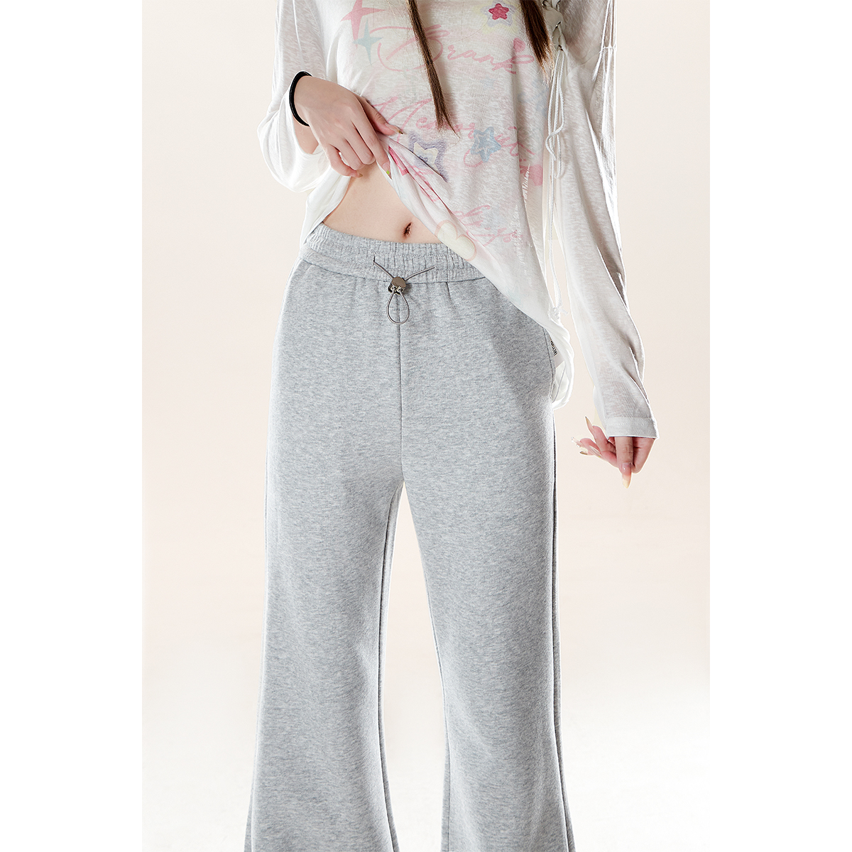 子冬季 自然涩韩系灰色微喇卫裤 休闲简约舒适喇叭裤 修身 女春秋新款