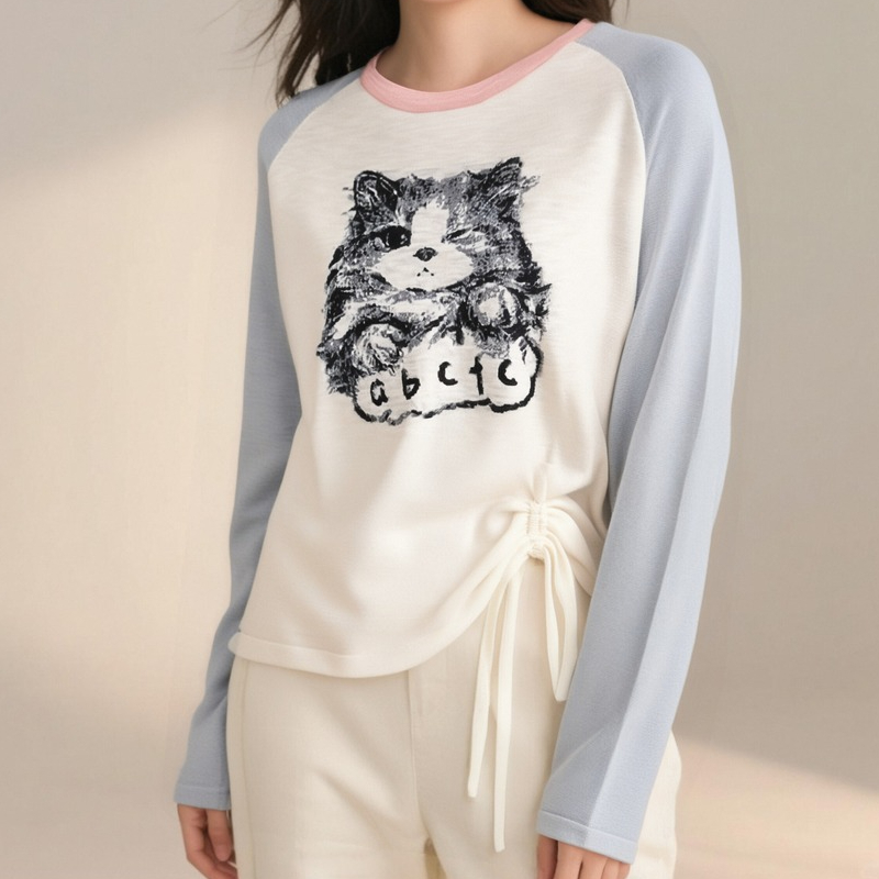 针织衫 ROCOCO 拼接抽绳宽松显瘦小个子长袖 休闲插肩袖 洛可可时尚