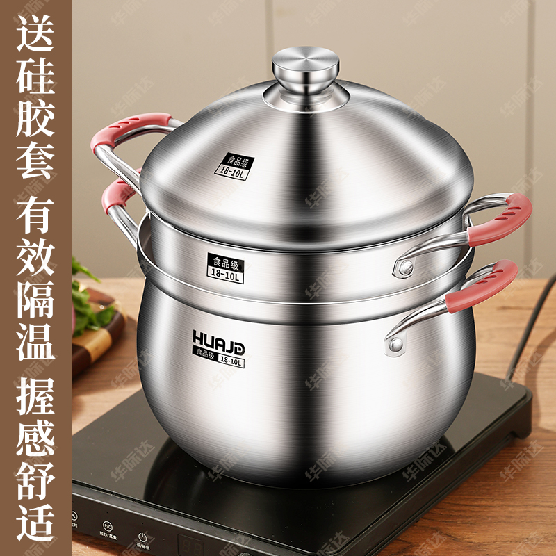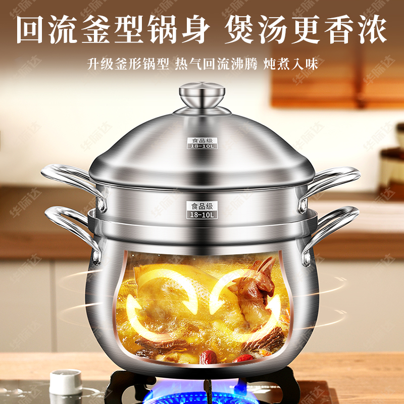 华际达汤锅家用2025新款 10不锈钢蒸煮锅燃气灶专用 加厚大容量18