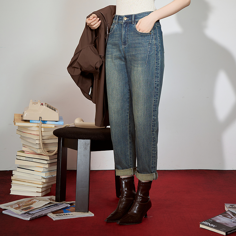 百搭气质牛仔哈伦裤 高腰修身 MGQK135124 2025秋季 曼诺比菲商场同款
