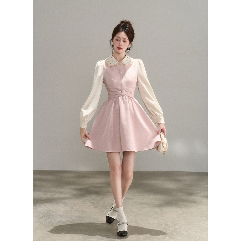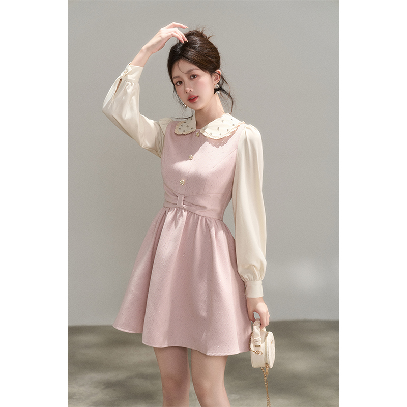 珂莱蒂尔2025秋新法式 假两件优雅气质收腰连衣裙