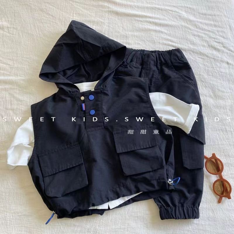 马甲韩版 春秋宝宝工装 帅气儿童休闲三件套潮 2025新款 男童时髦套装
