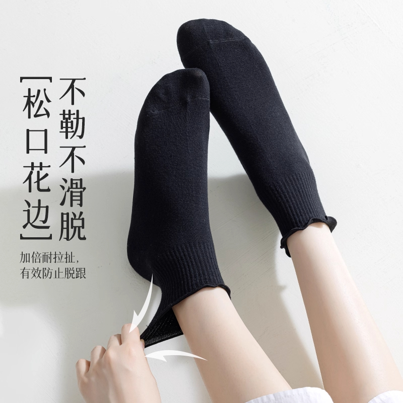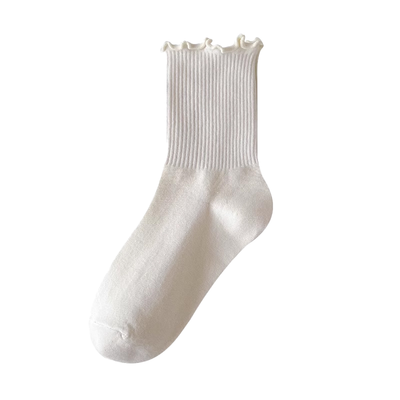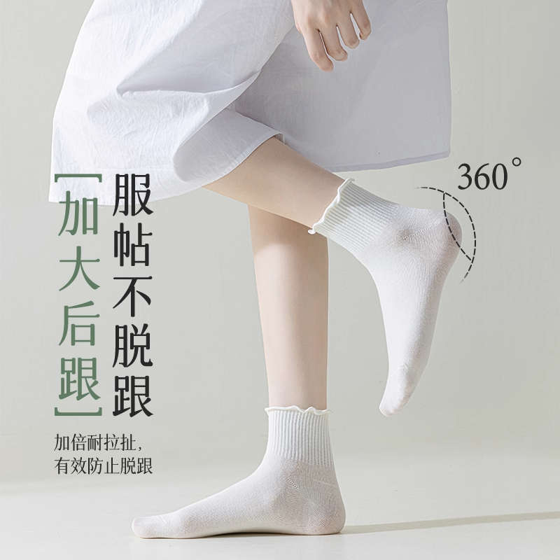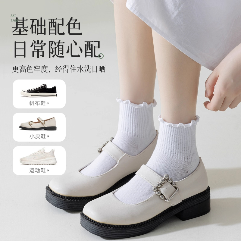 袜子女中筒袜非纯棉舒适透气白色少女生春秋季 木耳边短袜配小皮鞋