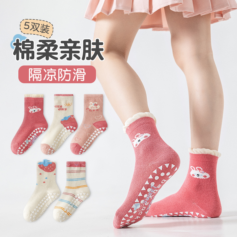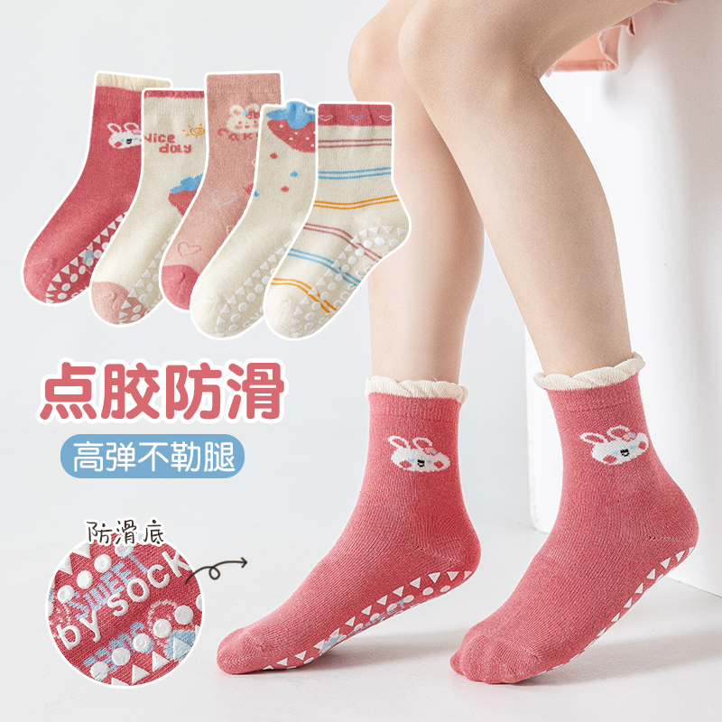 儿童袜点胶防滑宝宝袜学步袜卡通粉色男女童棉袜中筒蹦床袜幼儿园