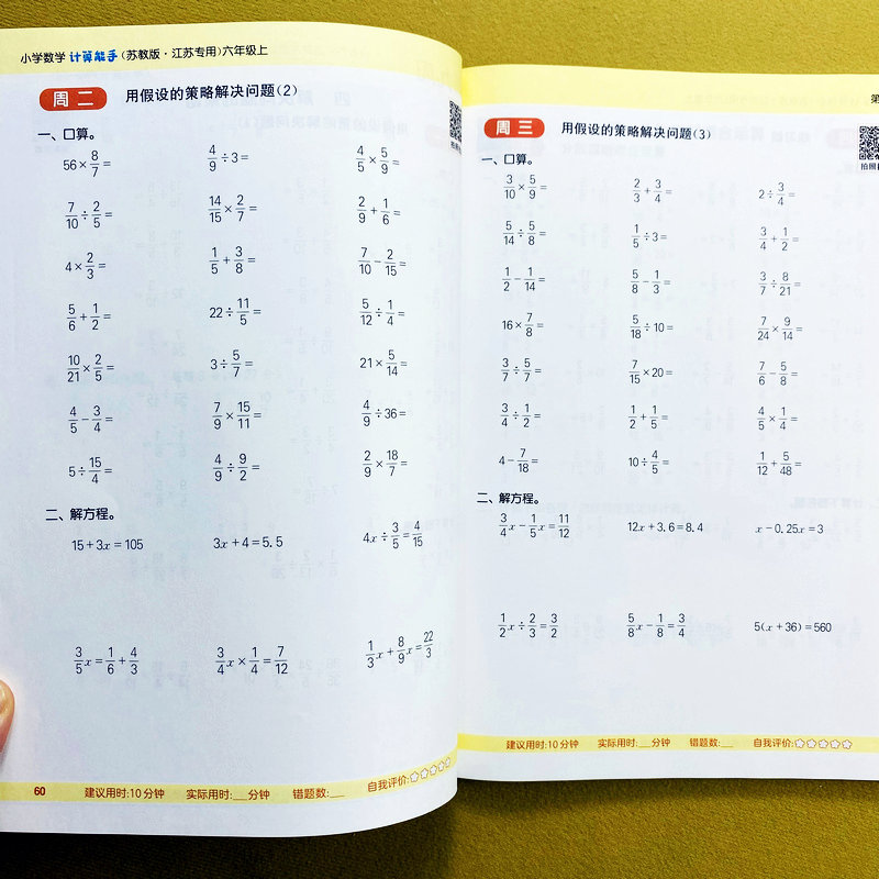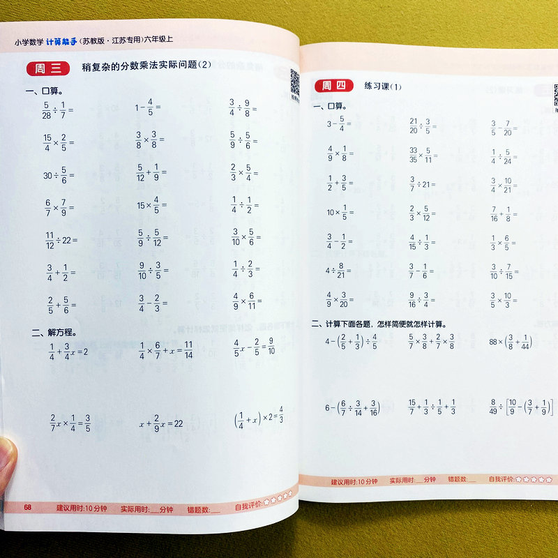 简便计算高手周周练通成学典 6年级上册计算天天练习册口算题卡百分数解方程脱式 2025苏教版 六年级上册计算能手口算笔算数学苏教版