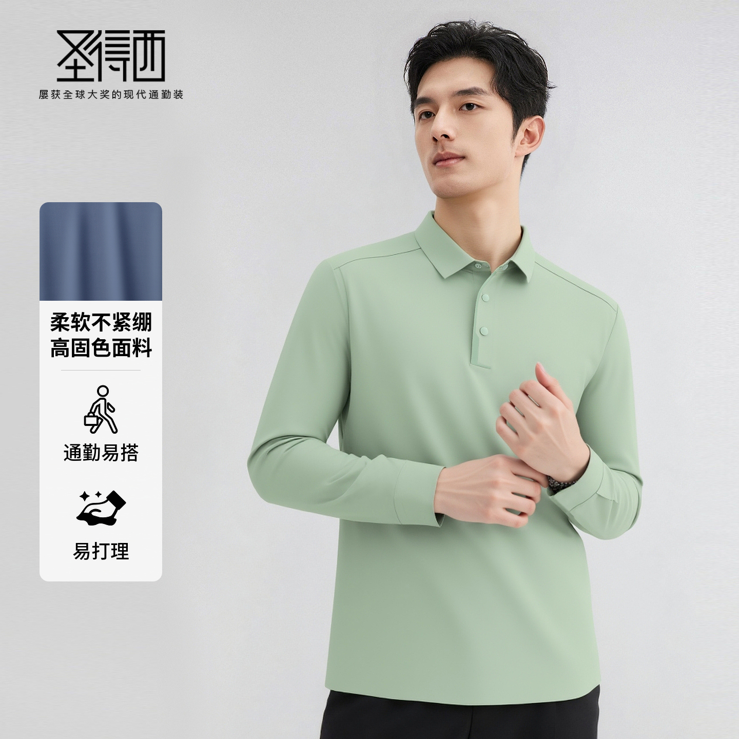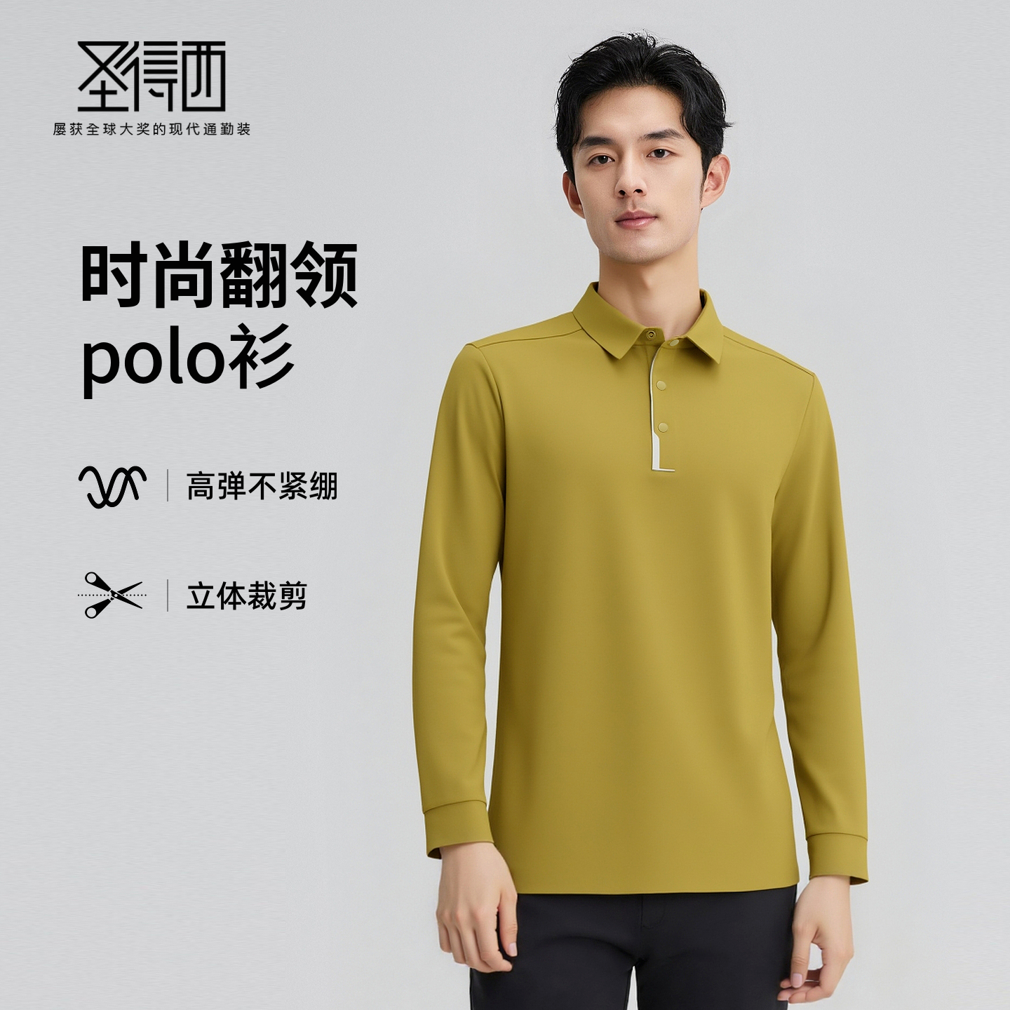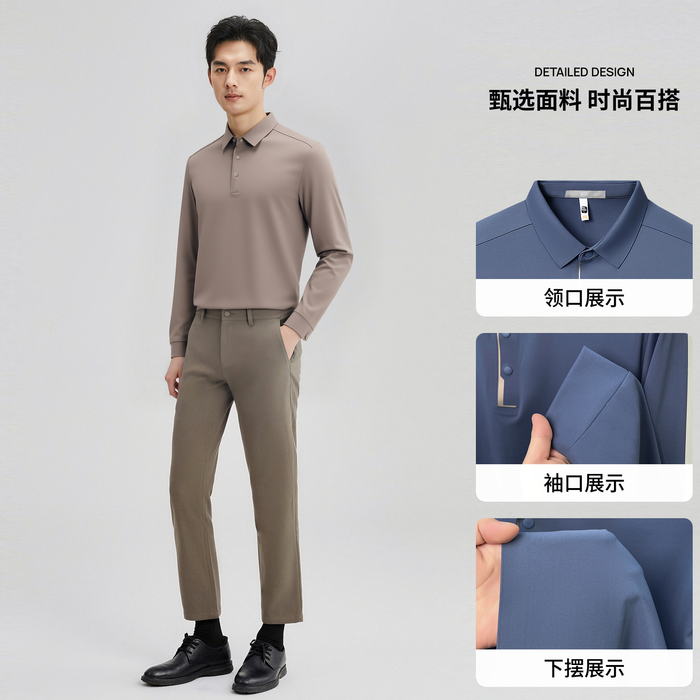 得体舒适 轻商务翻领T恤长袖 比音勒芬2025秋季 男士 POLO衫 新款
