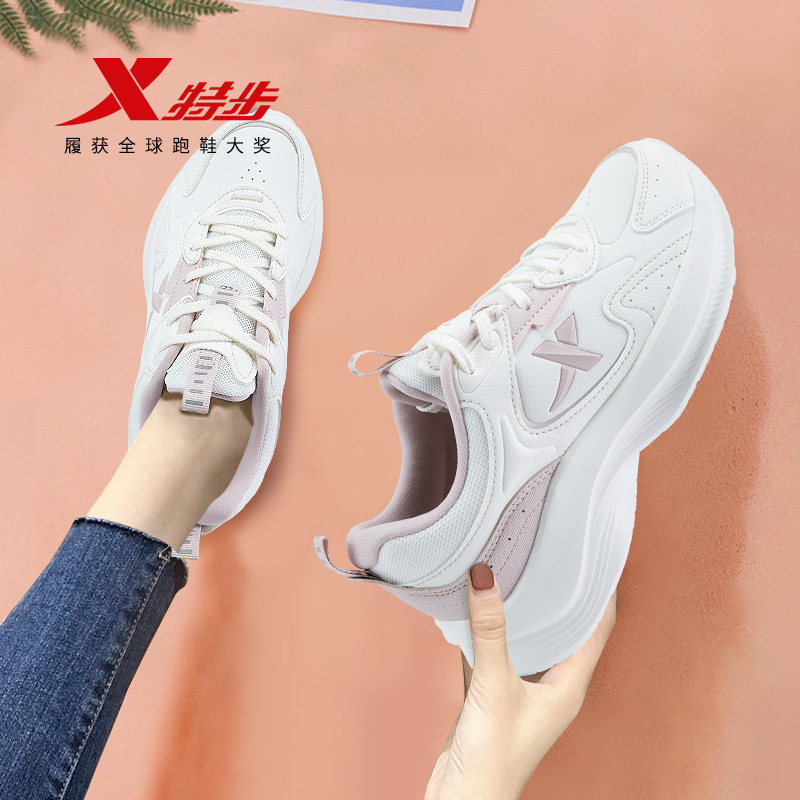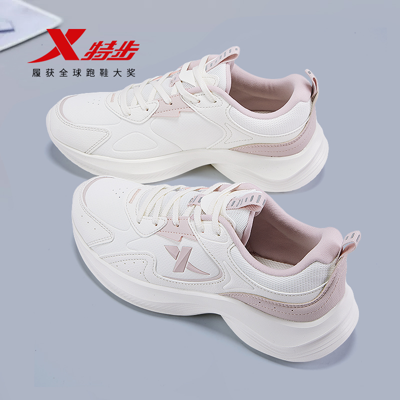 2025新款 舒适软底跑鞋 秋季 轻便减震跑步鞋 皮面防水运动鞋 特步女鞋