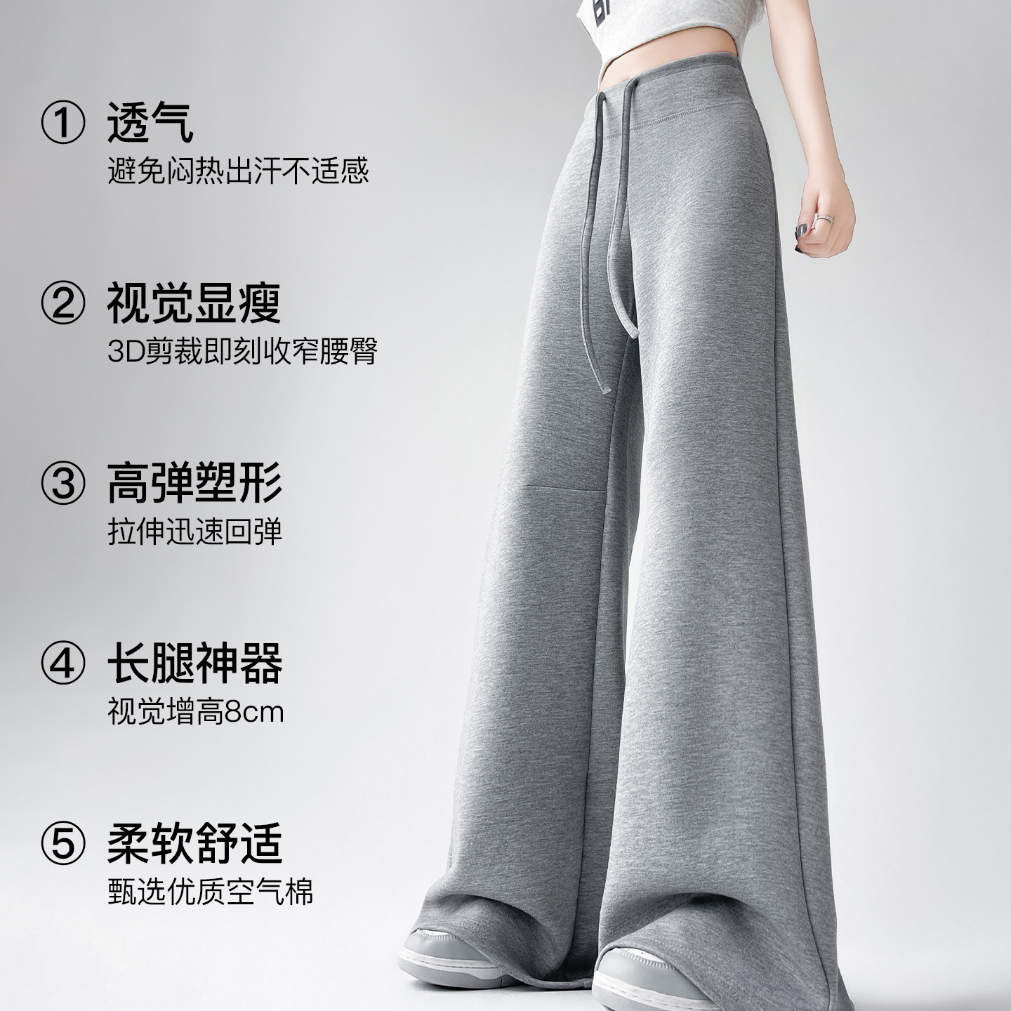 流行 垂感2025新款 曲线主义灰色休闲运动裤 女直筒阔腿高腰显瘦卫裤