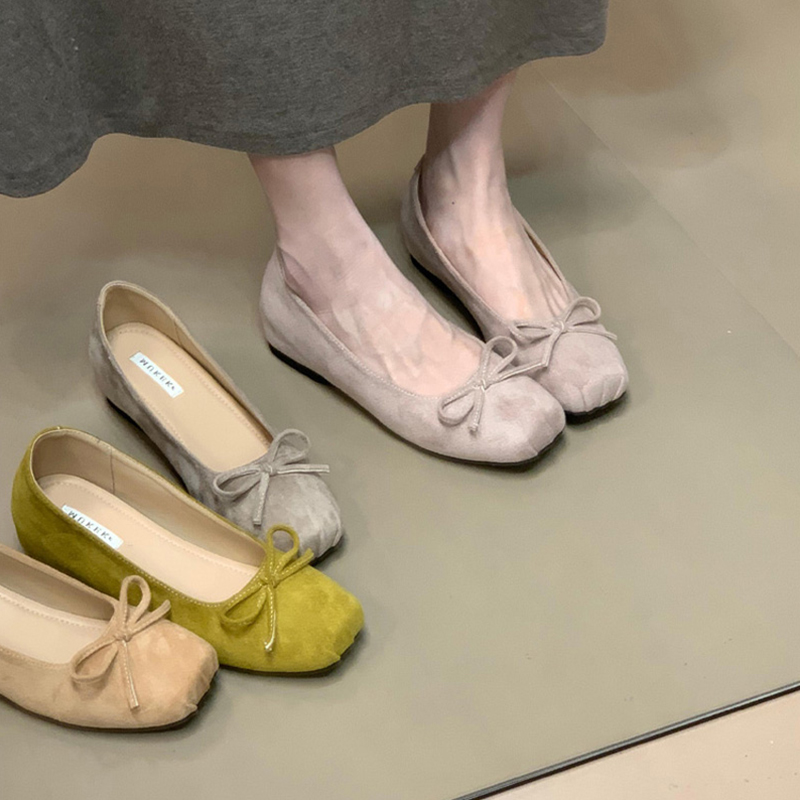 新款 女鞋 女士温柔蝴蝶结浅口单鞋 淑女平底单鞋 法式 热风2025年夏季