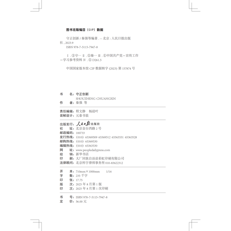 社新华书店正版 守正创新秦强 等世界政治人民日报出版