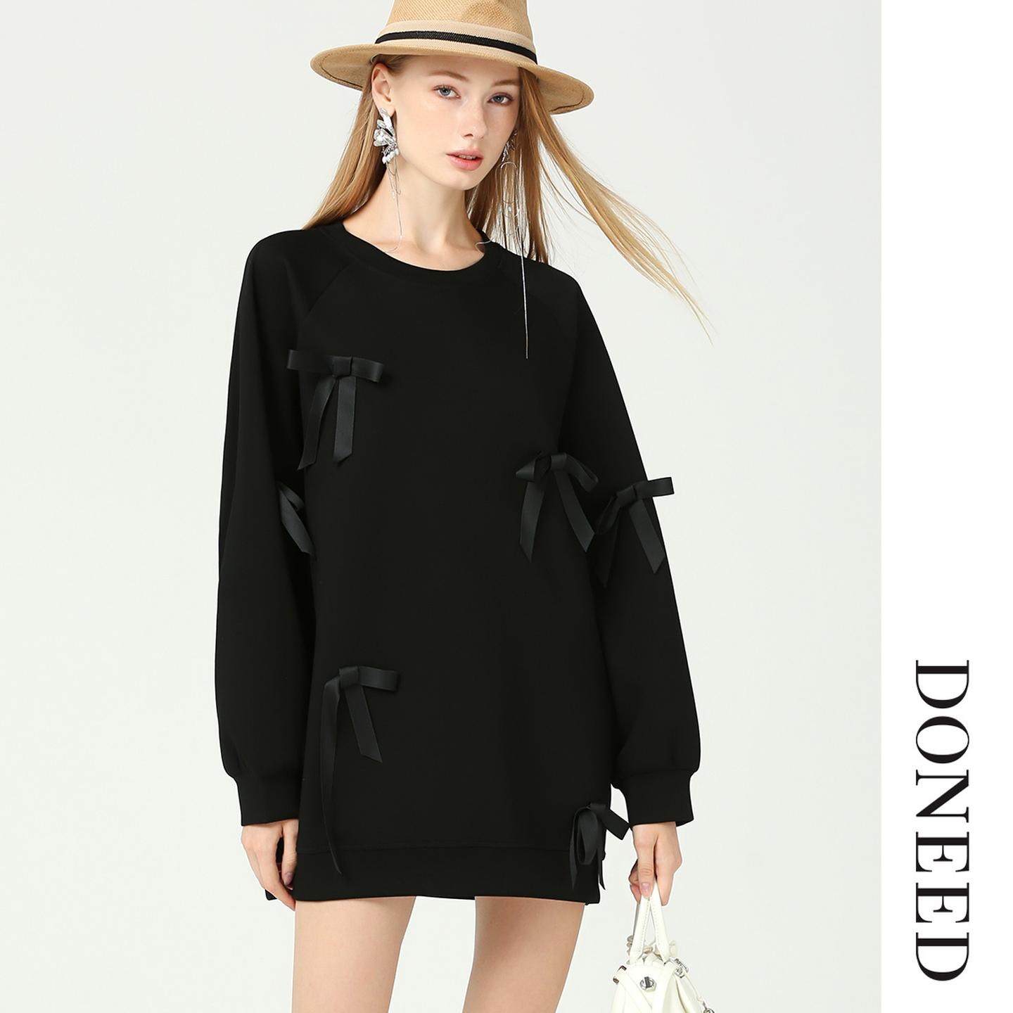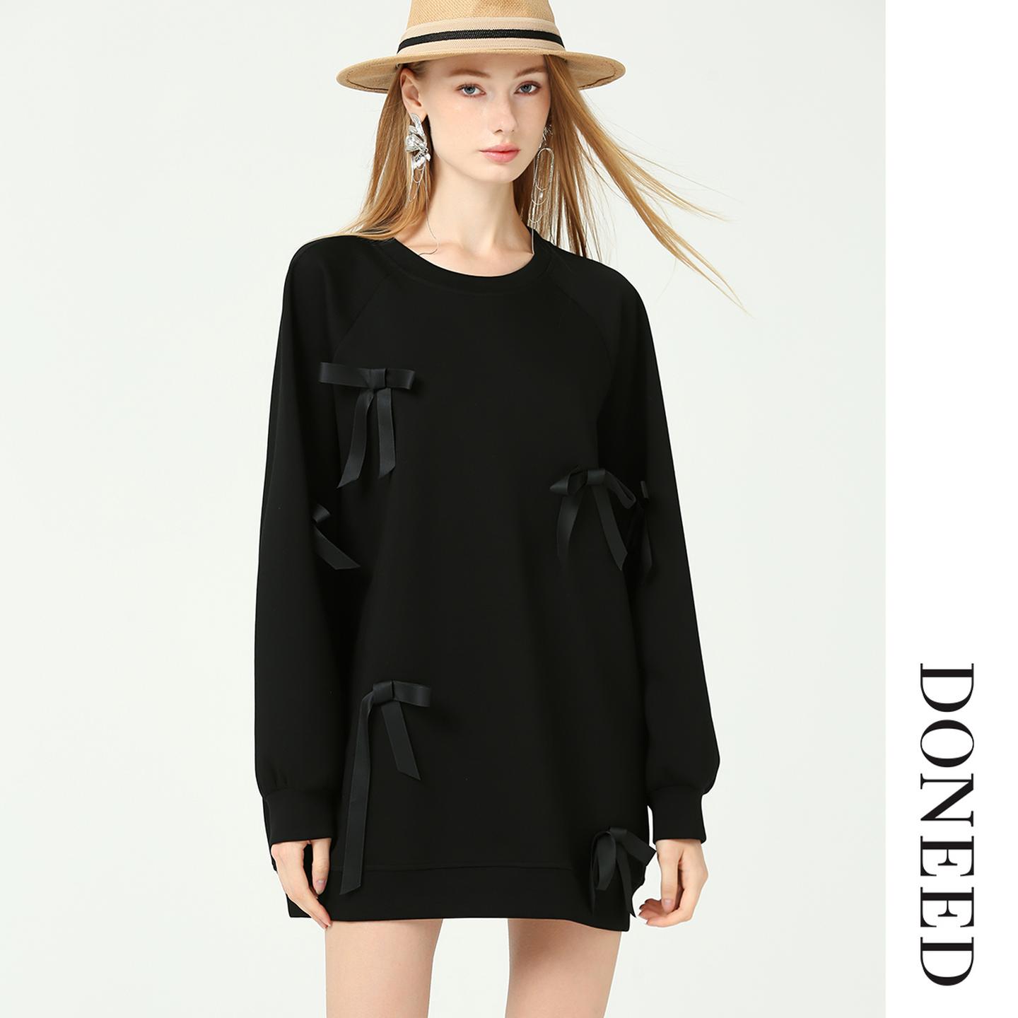 饰卫衣连衣裙女 显瘦蝴蝶结装 DONEED2025初秋时尚 休闲圆领插肩袖